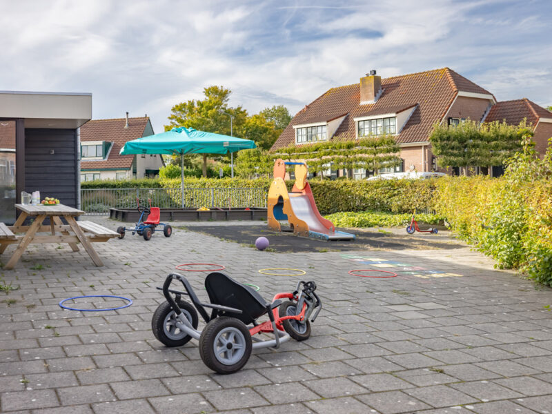 Op de BSO spelen we graag buiten. Op het kleine en grote speelplein hebben we alle ruimte om te bewegen. Zo rennen we de klimheuvel op en roetsjen van de grote glijbaan. Ook kliederen de jongste kinderen lekker in de zandbak. Op het plein van de bovenbouw trappen we een balletje in de pannakooi of spelen we een potje hockey. Ook gaan we er op uit in het dorp. Hier beleven we de leukste avonturen in de speeltuin.
