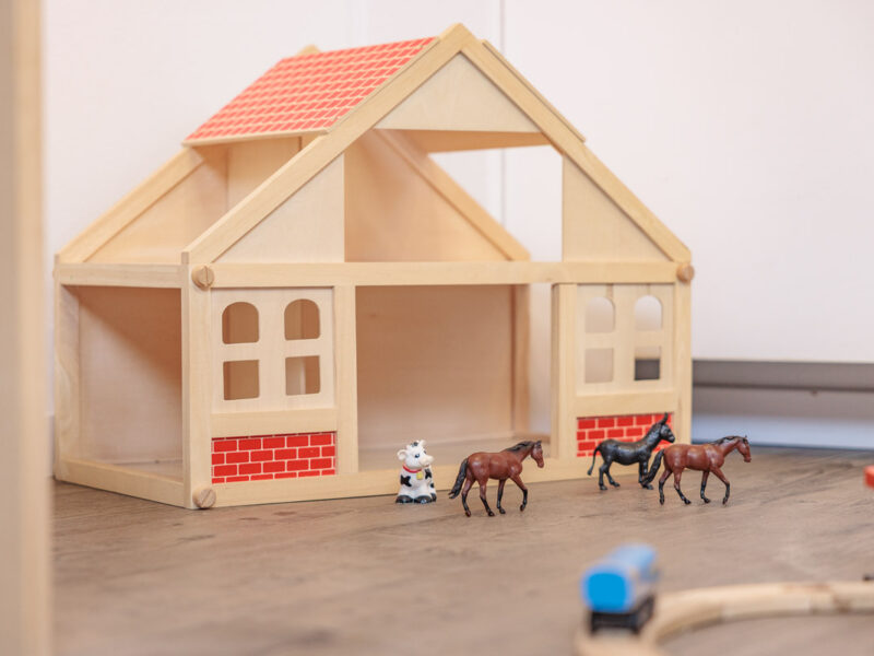 Weer of geen weer: we spelen elke dag lekker buiten! Het speelplein van ‘t Speeltreintje is ruim, groen en uitdagend. Zo ploffen we graag neer in het gras of leven we ons uit in de zandbak. Ook zitten we gezellig samen in het speelhuis en roetsjen we van de glijbaan.