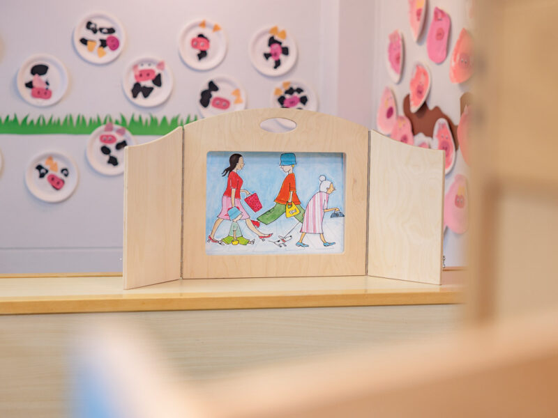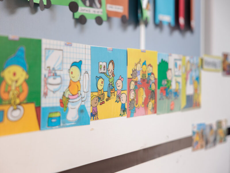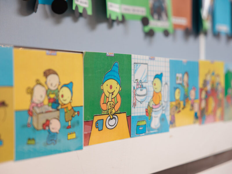 In ons gezellige peuterlokaal hebben we uitdagende speelhoeken. Zo luisteren we tijdens het voorlezen aandachtig naar onze juf in de grote leeshoek, racen we rond in de autohoek en kletsen we met elkaar op de bovenverdieping van het speelhuis. Ook ontdekken we van alles over het wisselende thema. Zo gaven we tijdens het thema ‘Dit ben ik!’ een echte modeshow voor onze ouders. Daar stralen we van!