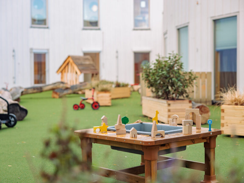 Bij ons kinderdagverblijf draait het allemaal om spelen en ontdekken. De baby’s hebben alle ruimte in de mooie grondbox, waar ze kruipen, rollen en spelen. In de hangwieg sluiten de allerkleinsten hun ogen om lekker een dutje te doen. In onze speelkeuken kokkerellen we graag en verzorgen we de poppen. Ook hoge torens bouwen met DUPLO is favoriet. Aan tafel knutselen en kleien we de mooiste kunstwerken. Buiten op ons ruime binnenplein roetsjen we van de glijbaan, spelen we in de grote zandbak en klauteren we op de krokodillenbrug.