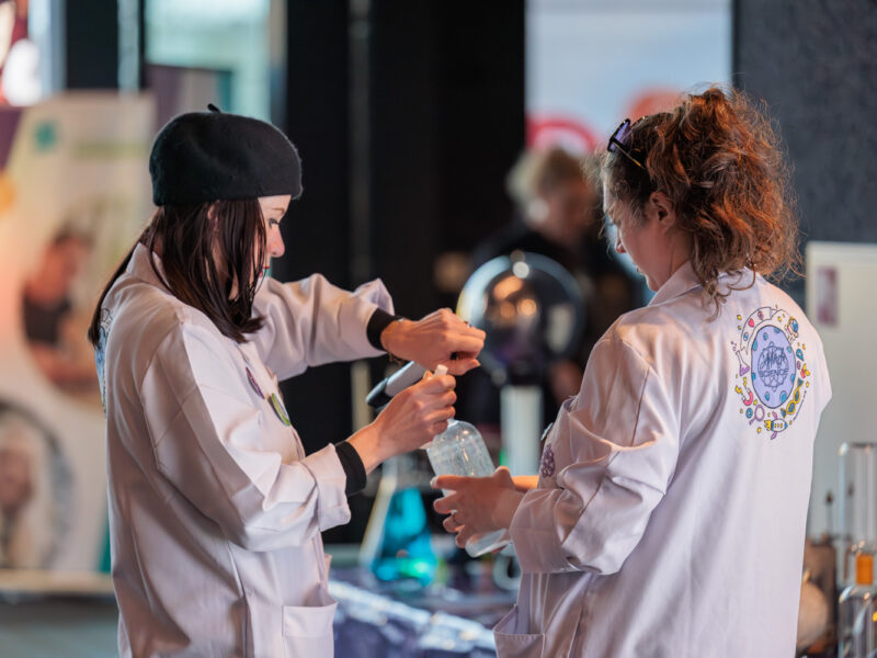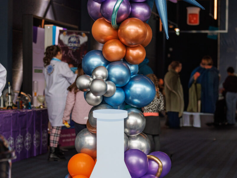 Na afloop ging het feest verder in de foyer. De professoren van Mad Science lieten met hun proefjes en experimenten zien dat wetenschap allesbehalve saai is. Er werden vrolijke sleutelhangertjes gemaakt en natuurlijk mocht een lekker ijsje van Minimelts niet ontbreken.