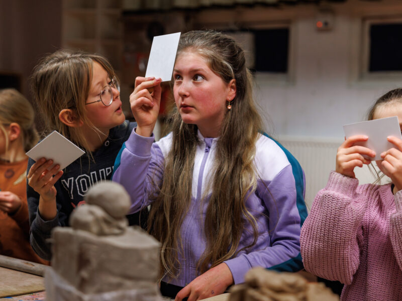 Een dominotekening, maanlandschap of linosnede; elke keer verzint Liesbeth wat nieuws om samen met de kinderen te maken. Gewoon met de materialen uit de BSO-kast. “Haar workshops zijn een verrijking”, vertelt Kimberley Manuela, pedagogisch medewerker van BSO Totempaal. Ze wijst naar zo’n twaalf kinderen die druk aan het kleien zijn: “Het clubje daar is elke keer heel enthousiast en wil eigenlijk niet stoppen. Een paar kinderen gaan liever buitenspelen; die ruimte is er ook.”